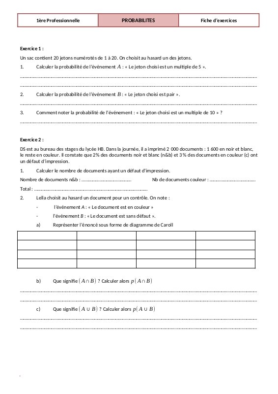 2025 2026 Fiche D'Exercices
