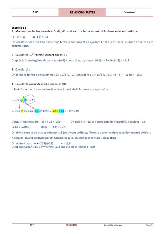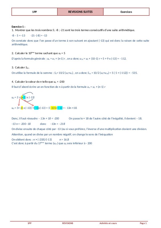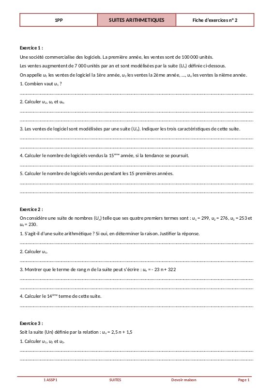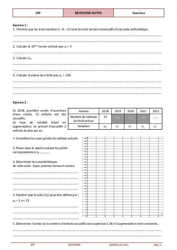 Contrôle 1Pp Suites Arithmétiques 2021 2022