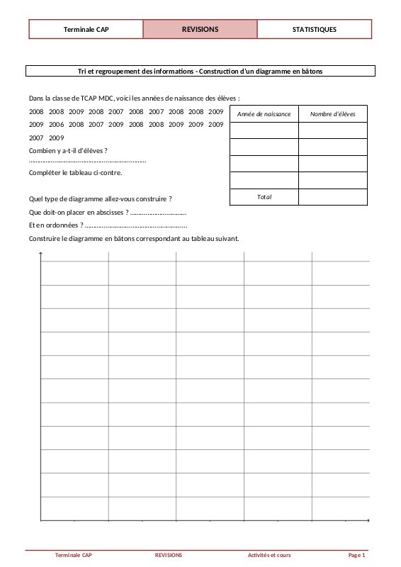 Révisions De La 2Cfm Statistiques Diagramme En Bâtons